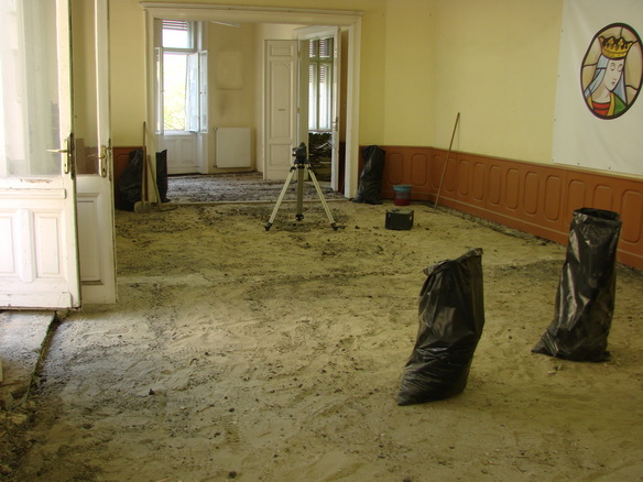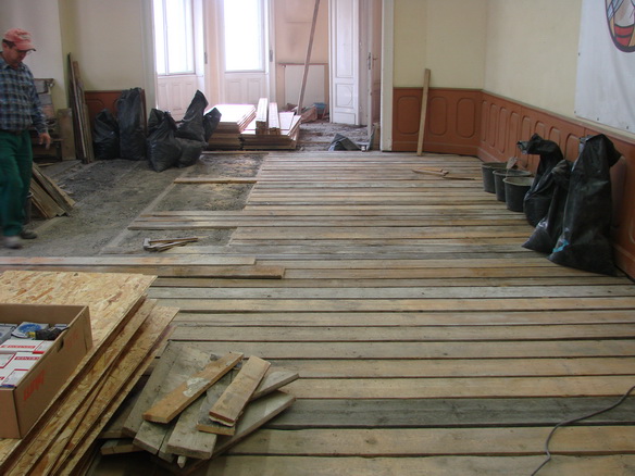 2014 Magyar Sakkszövetség szegezett parketta cseréje szalagparkettára.
